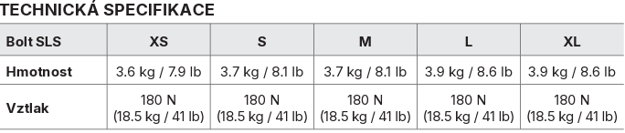 Křídlo Bolt SLS nabízí bezkonkurenční pohodlí a stabilitu. Zátěžový systém SLS má nosnost 4+4 kg u velikostí XS - M a 6+6 kg u velikostí L a XL. Pro větší klid při ponorech, se postará vizuální identifikace správného zajištění zátěže. Komfort a možnost maximálního přizpůsobení jsou skutečně unikátní, stejně jako jeho ergonomický design.